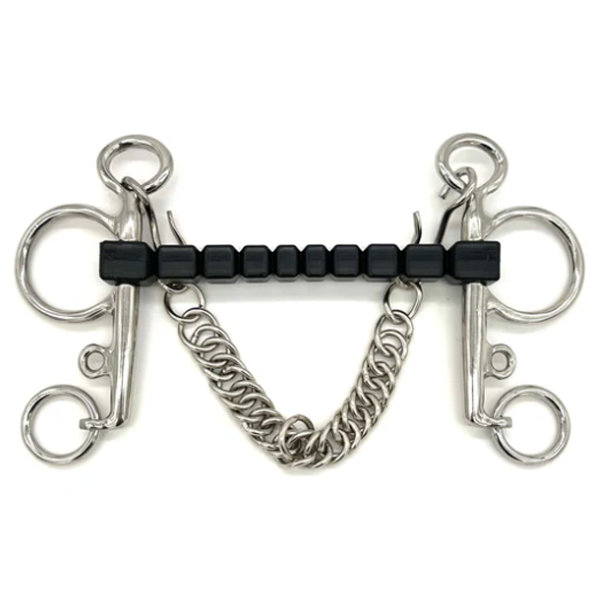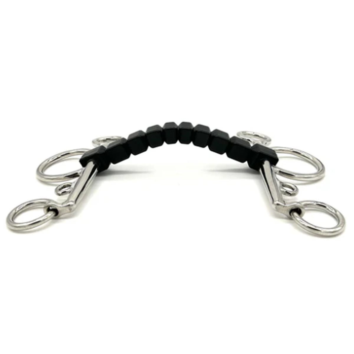 The expansive surface area of the rubber block mouthpiece significantly reduces the horse’s tendency to fix or lean on the forehand, promoting a more balanced and responsive connection. This helps riders improve their horse’s posture and overall performance by discouraging leaning.