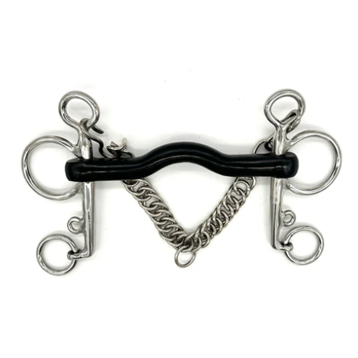 This Pelham bit is distinguished by its ported design, which offers space for the horse's tongue, thereby reducing pressure on the sensitive areas of the mouth. This design is particularly advantageous for horses with less room in their mouth or those prone to discomfort with more traditional bits.