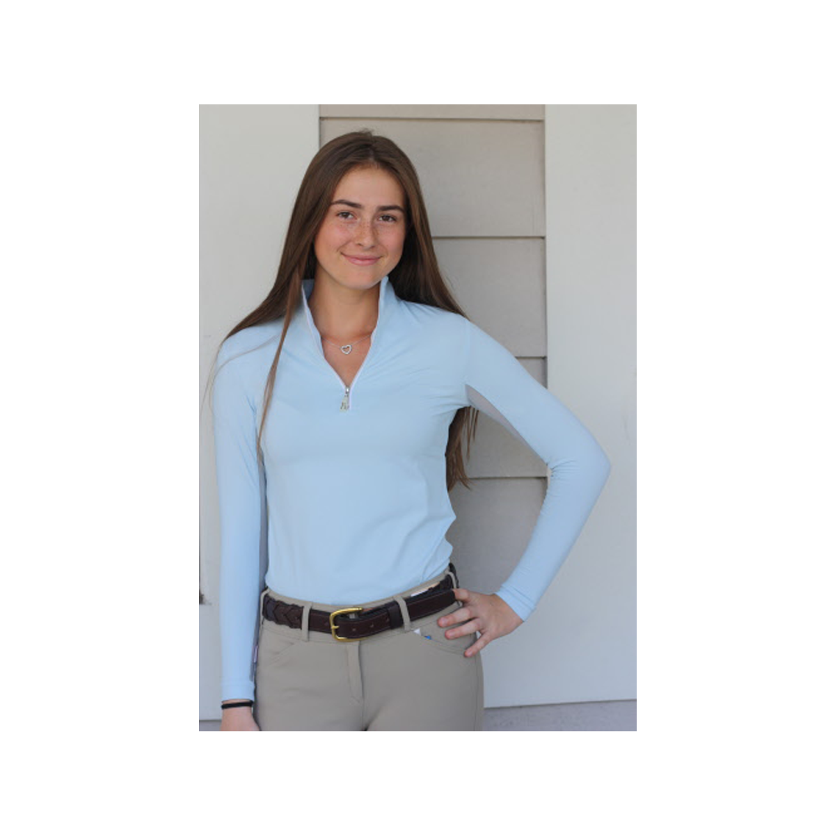 Lightweight and comfortable, the Tailored Sportsman IceFil Zip Top keeps you cool even on the hottest days. Long sleeves offer sun protection, while the mesh panels under the arms allow for cooling air circulation. IceFil fabric works with your body to wick moisture away from your skin and lowers your temperature by up to 5 degrees. The inner surface is slightly brushed for extreme softness against your skin. Styled with a 1/4 zip front, this riding shirt is offered in a selection of classic and timeless colors. ***More seasonal colors available. Please call for color and size availability***