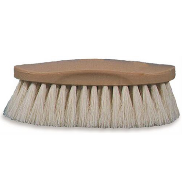 The #50 Showman is an off-white soft natural tampico bristled brush with a full size handle. The bristle is trimmed with the original double contoured trim to provide more surface contact. The handle is made with the GRIP-FIT technology.