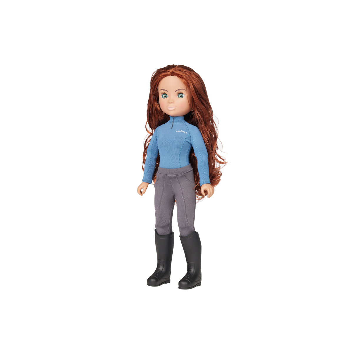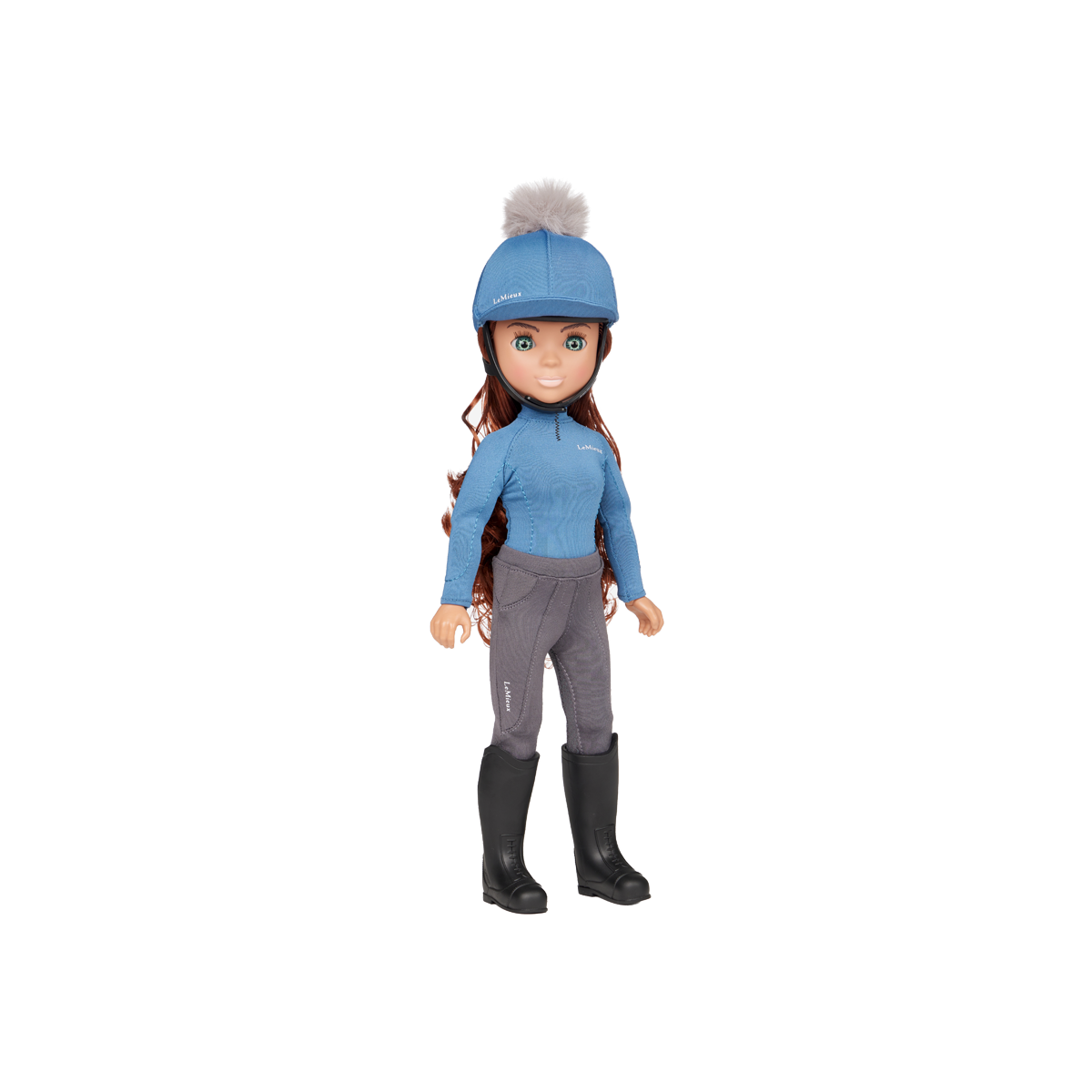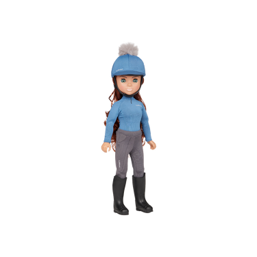 One of three interactive, fully articulated, high-quality equestrian dolls with individual personalities and matching outfits in LeMieux core colours, Olivia has luscious, real-feel, brushable long chestnut hair and natural eyelashes. She comes wearing removable replica LeMieux riding wear in Ice Blue, with a removable riding helmet and boots.