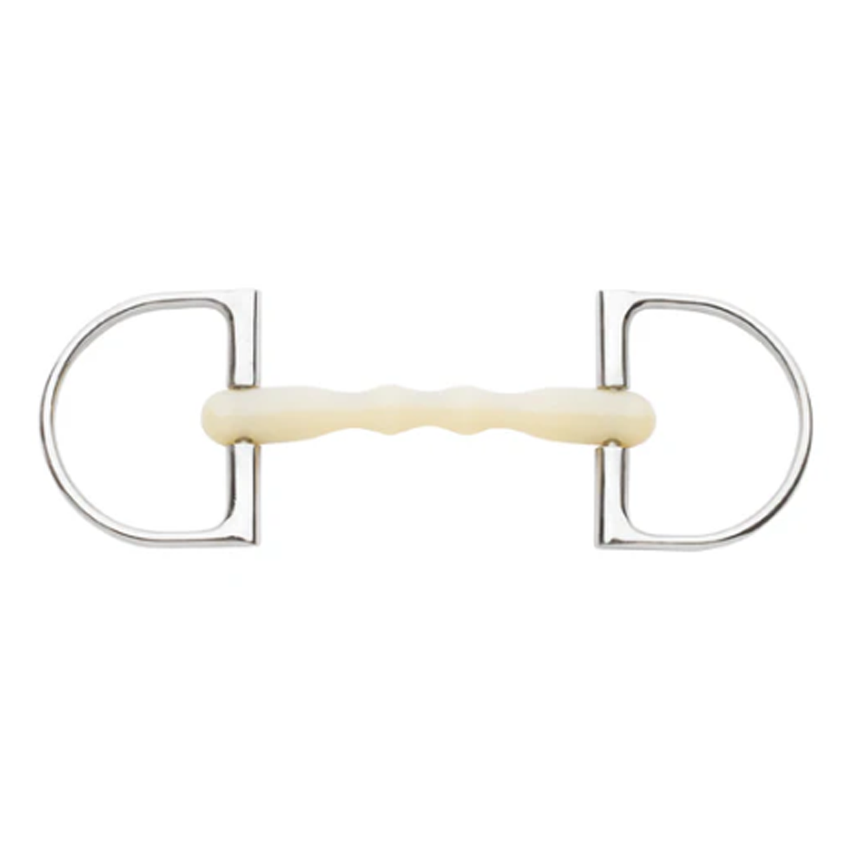 The unique Apple scent encourages horses to accept the bit and the space age polymer provides for a gentler bit for a happier horse. The Happy Mouth® Pro King Dee Bits feature a more traditional-looking Dee Ring cheek which is more desirable in the hunter and equitation arenas. Note that due to the construction on the cheek, this bit style will measure 1/4"" less than the listed sizes state.