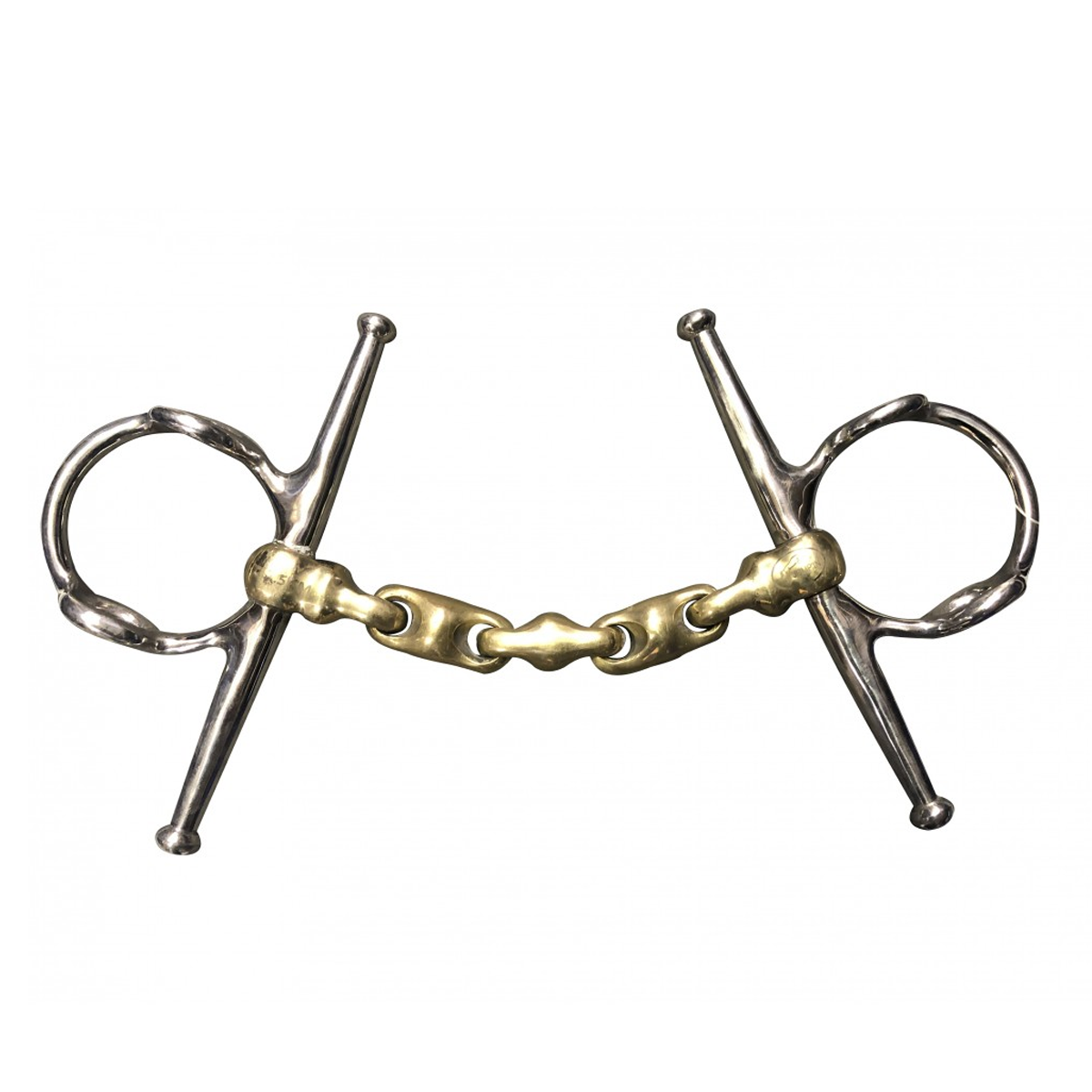 Composition: Full cheek gag bit with 50 mm large rings and standard 17 mm thick cannons made of German Silver (65% copper, 23% zinc, 12% nickel) a relaxing and solid alloy.