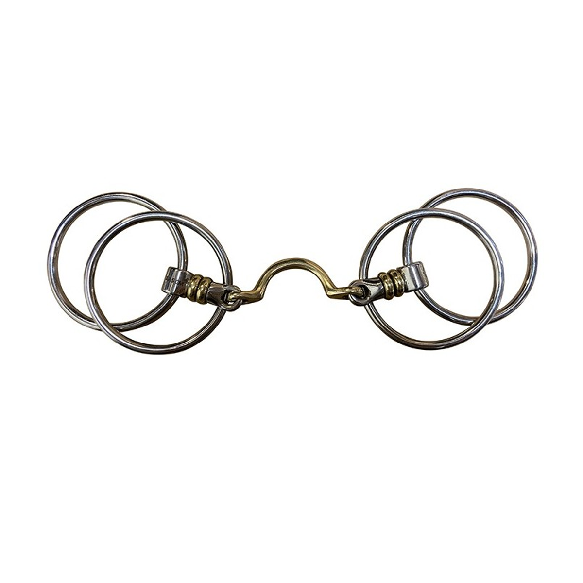 Tips: the play between the rings helps avoiding fixed points and ends up splitting the horses contact points. The high port helps for direction. Horses can easily place their tongue, breathe better and will be more focused while working.