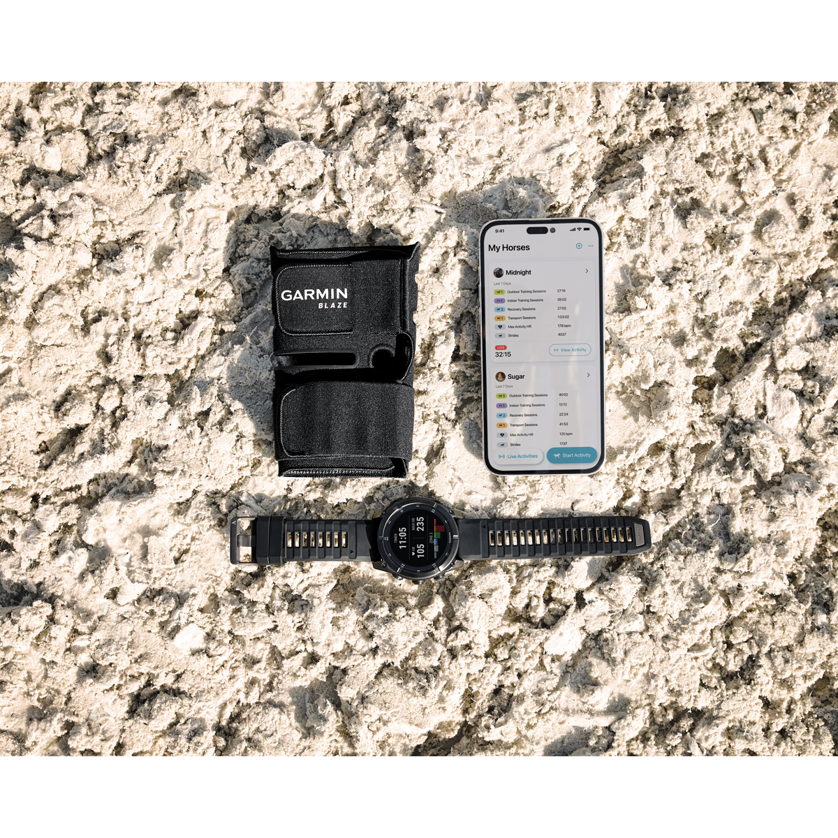 Pair with the Blaze™ mobile app on your smartphone, or use the Blaze app from the Connect IQ™ Store on your compatible Garmin smartwatch to view heart rate, strides, gait, distance and more1 (requires a connection with Bluetooth® technology)