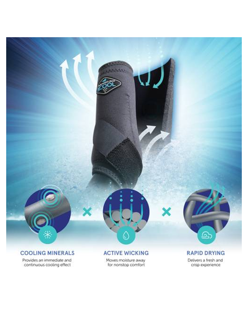 The Professional’s Choice 2XCool Sports Medicine Boot was designed around COOLING, COMFORT, and DURABILITY. This neoprene-free boot is constructed with ultra-lightweight, super-breathable materials that provide the support and 4-way stretch Professional’s Choice boots are known for. The liner of the boot is made with 2XCool performance fabric by brrr°, a technologically-advanced textile that combines natural cooling minerals, active wicking, and rapid drying to create a “Triple Chill Effect” that instantly and continuously draws away heat and moisture. A new stretch Kevlar patch on the suspensory strap flexes with every step to provide ultimate support and durability without restricting freedom of movement. The Professional’s Choice 2XCool Sports Medicine Boots featuring brrr° will keep your horse’s legs cool, dry, and protected.