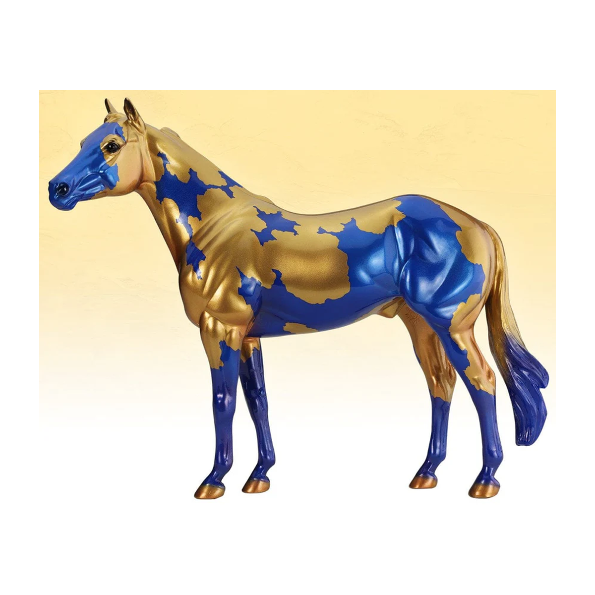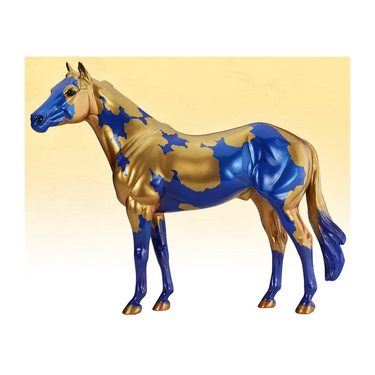 In the early 1960s, Breyer released its first “decorator” models – horses that featured colorful, decorative finishes in both matte and glossy. Although they weren’t the most popular models at that time, decorators have since become some of the most beloved pieces in the Breyer line! The first decorator models were simple shades of blue and gold, either dappled or solid. Today’s decorators pull from a rich palette of colors and a variety of inspirations, including rainbows, holidays, and the night sky. Gilded is an exciting new take on the original blue and gold color palette, joining stunning metallic shades with a splashy pinto coat. This limited edition work of art celebrates the beauty of the horse and the artistry of Breyer! You're sure to want this lovely model in your Breyer collection!