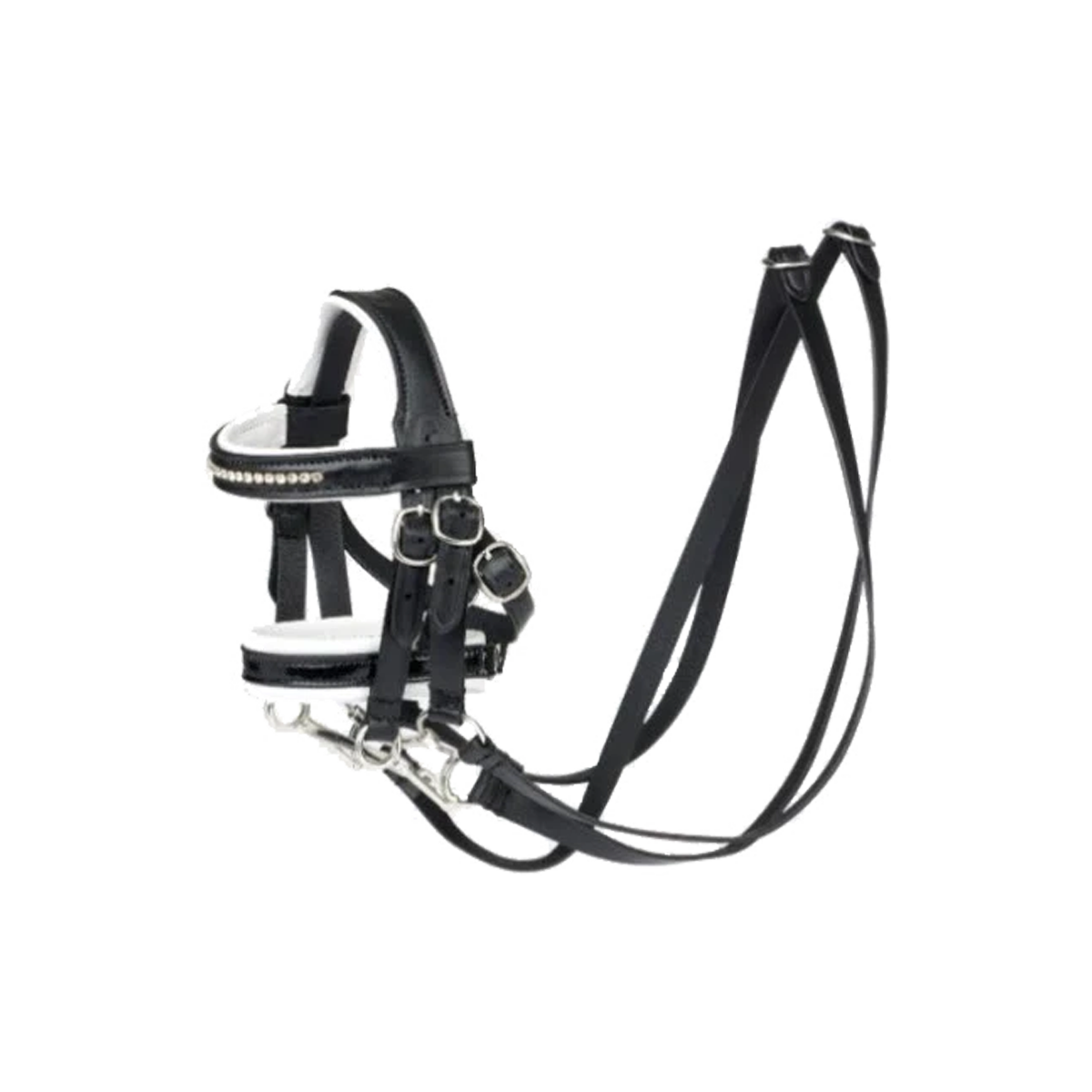 This incredibly detailed replica double bridle is perfect for little dressage riders to practice tacking up their LeMieux Toy Pony. A real leather dressage bridle made by the same leather workers who craft the elite performance bridles, this authentic miniature has functional buckles so you can find the perfect fit for your very own LeMieux Toy Pony. Just like a real dressage bridle, it has a snazzy crystal browband and a shiny black patent noseband with soft white leather padding. All the accurate details are in place, even down to the double bit, with a Weymouth, a Bradoon and double reins. Suitable for ages 3+