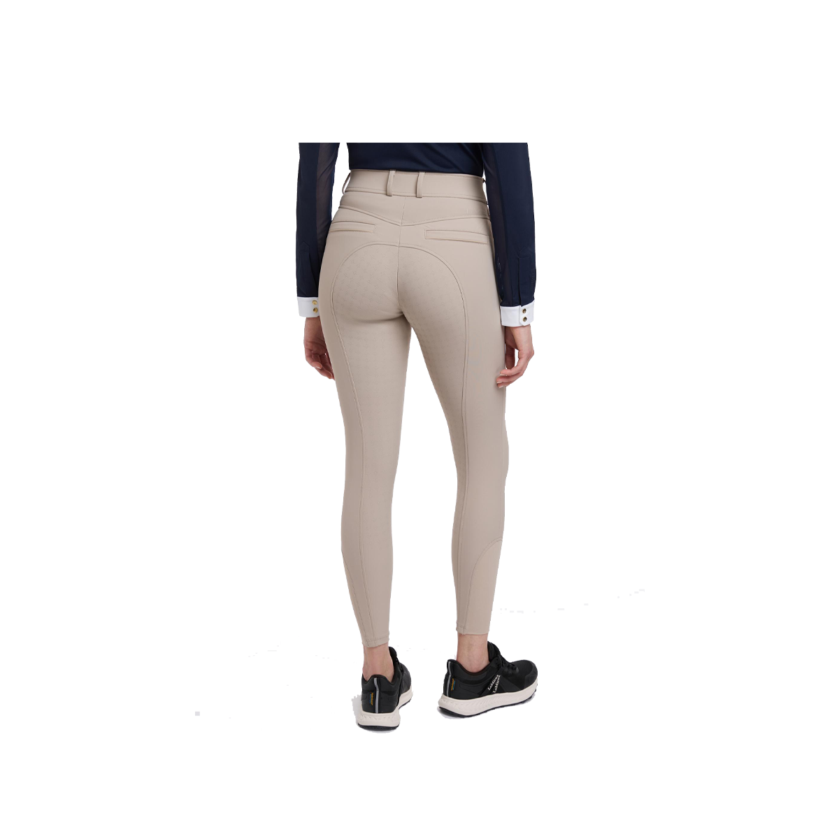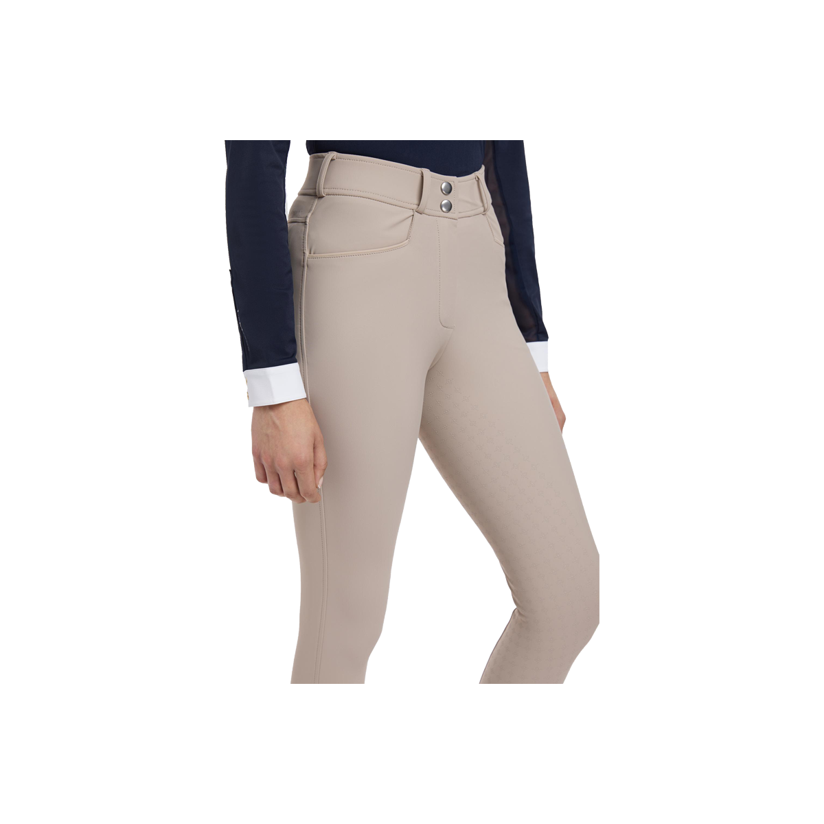 Smart square front pockets with tonal reflective details, a seamless-feel design, and a soft and flexible four-way adaptive stretch keep you moving in comfort. Belt loops, faux back pockets, and a fly front are classic breech styling details. Offered in full seat and knee grip styles, they deliver stability and security in the saddle, according to your preference.