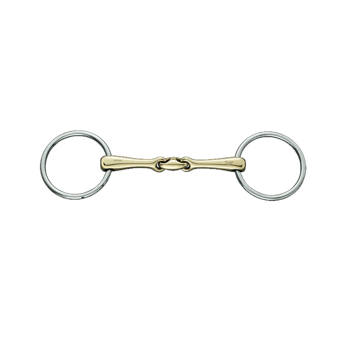 El bocado de anilla suelta KK Ultra de Herm Sprenger está diseñado para adaptarse a paladares más estrechos, el eslabón del medio se acorta y gira 45°. La boquilla Aurigan fomenta la seguridad y la aceptación del bocado. Este bocado está especialmente diseñado para mejorar la comodidad y el rendimiento de su caballo. Disponible en tamaños: 120 mm (4 ¾"), 130 mm (5 1/8"), 140 mm (5 ½")