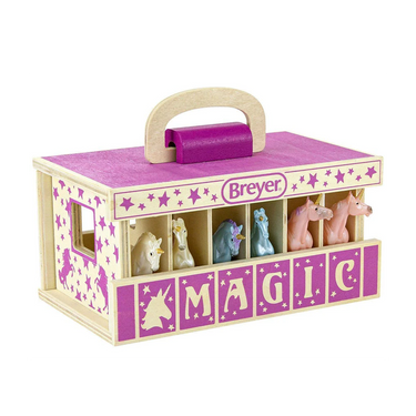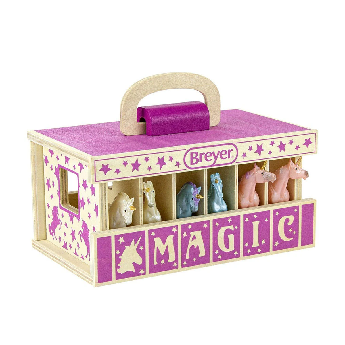 Producto: Establo de madera para transportar unicornios mágicos de Breyer