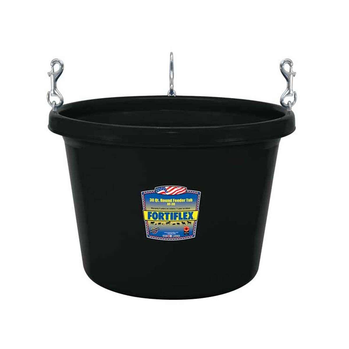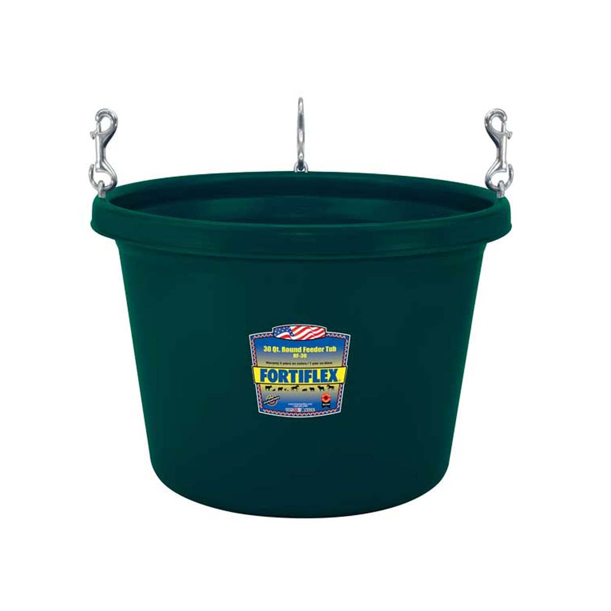 Comedero redondo de 30 cuartos de galón fabricado con una mezcla de caucho y polietileno FORTALLOY para una resistencia y dureza excepcionales incluso a bajas temperaturas. La construcción de paredes gruesas y los ganchos a presión de latón de alta resistencia y los refuerzos galvanizados garantizan una durabilidad duradera. Dimensiones: 17 3/8" de diámetro x 12" de alto. Disponible en colores: negro, azul marino, verde militar.