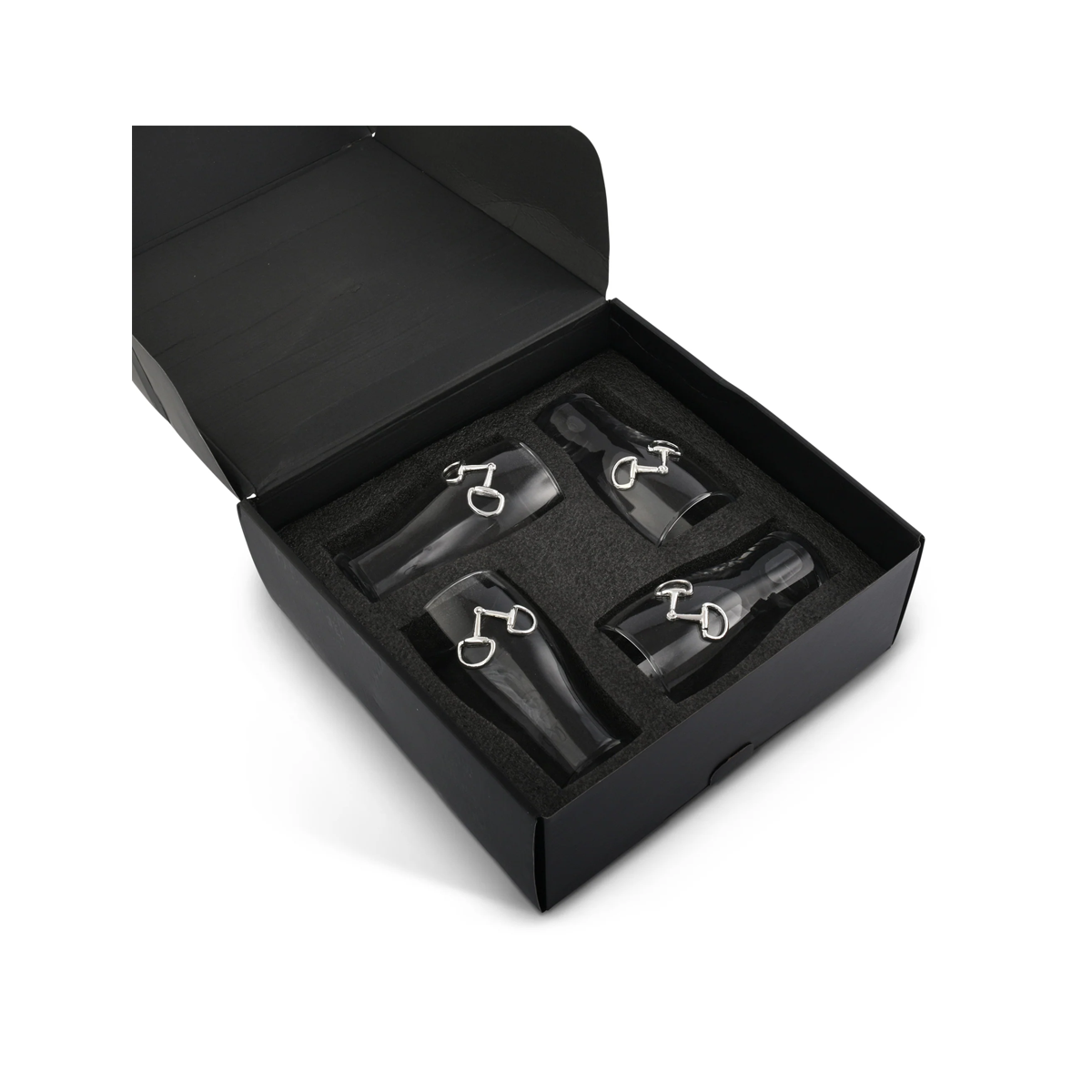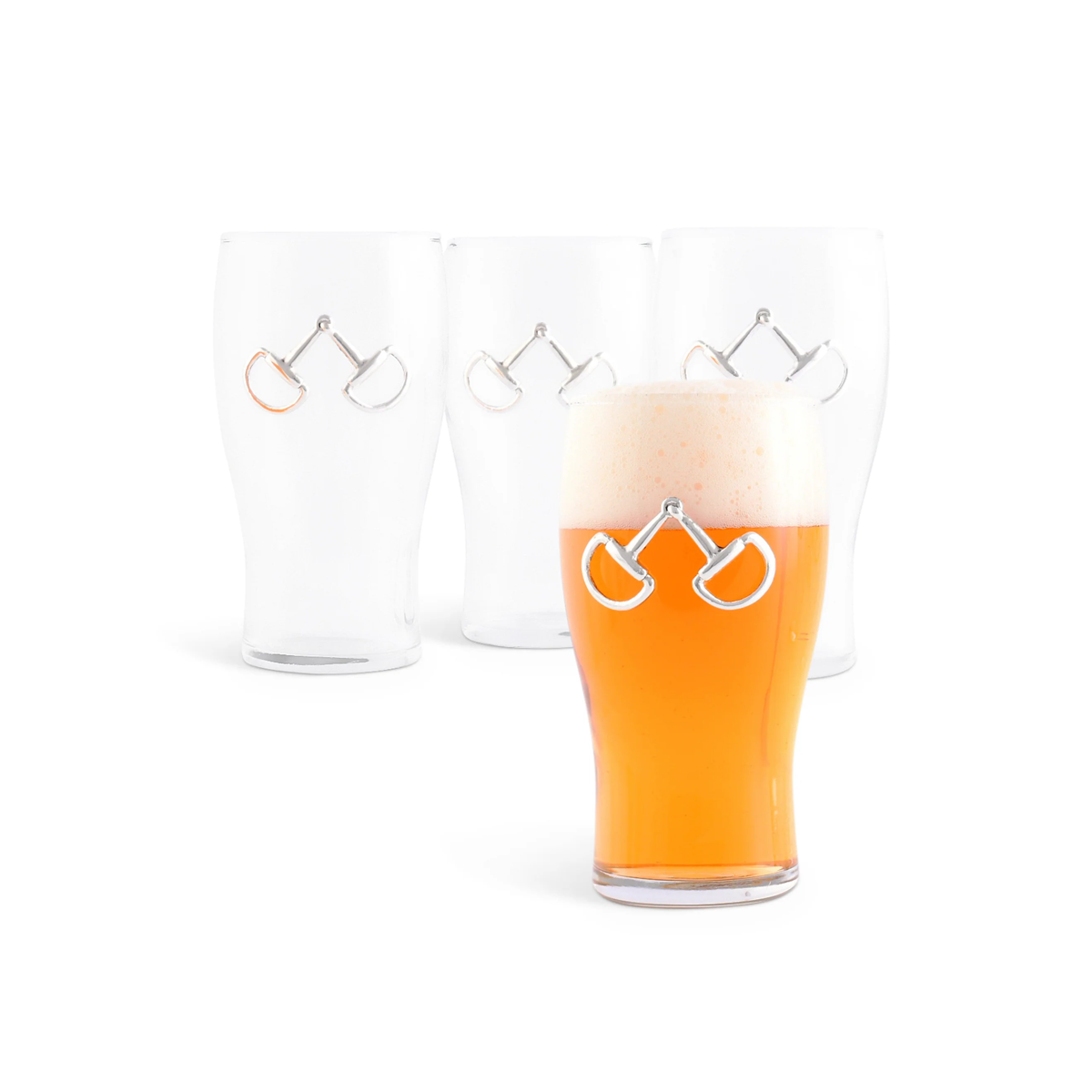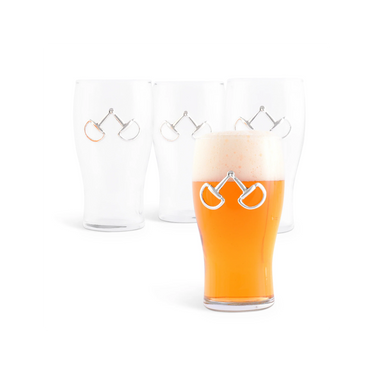 Celebrate your love of equestrian style with this set of four beer pint glasses from Arthur Court. Each 18-ounce glass is adorned with a detailed equestrian bit medallion, crafted in signature aluminum alloy for a refined, rustic touch. Perfect for horse lovers and beer enthusiasts alike, these glasses bring a unique charm to any gathering. Pair them with other equestrian-themed pieces from Arthur Court for a coordinated and elegant collection.