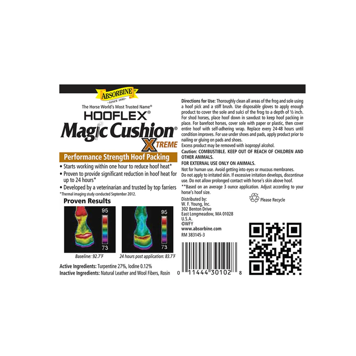 overworked, overheated hooves—starting to reduce hoof heat within one hour. Trusted by top farriers, it uses natural ingredients to support hoof health in multiple ways. Apply as needed, or pack under a shoe and pad for long-lasting comfort throughout the shoeing cycle.