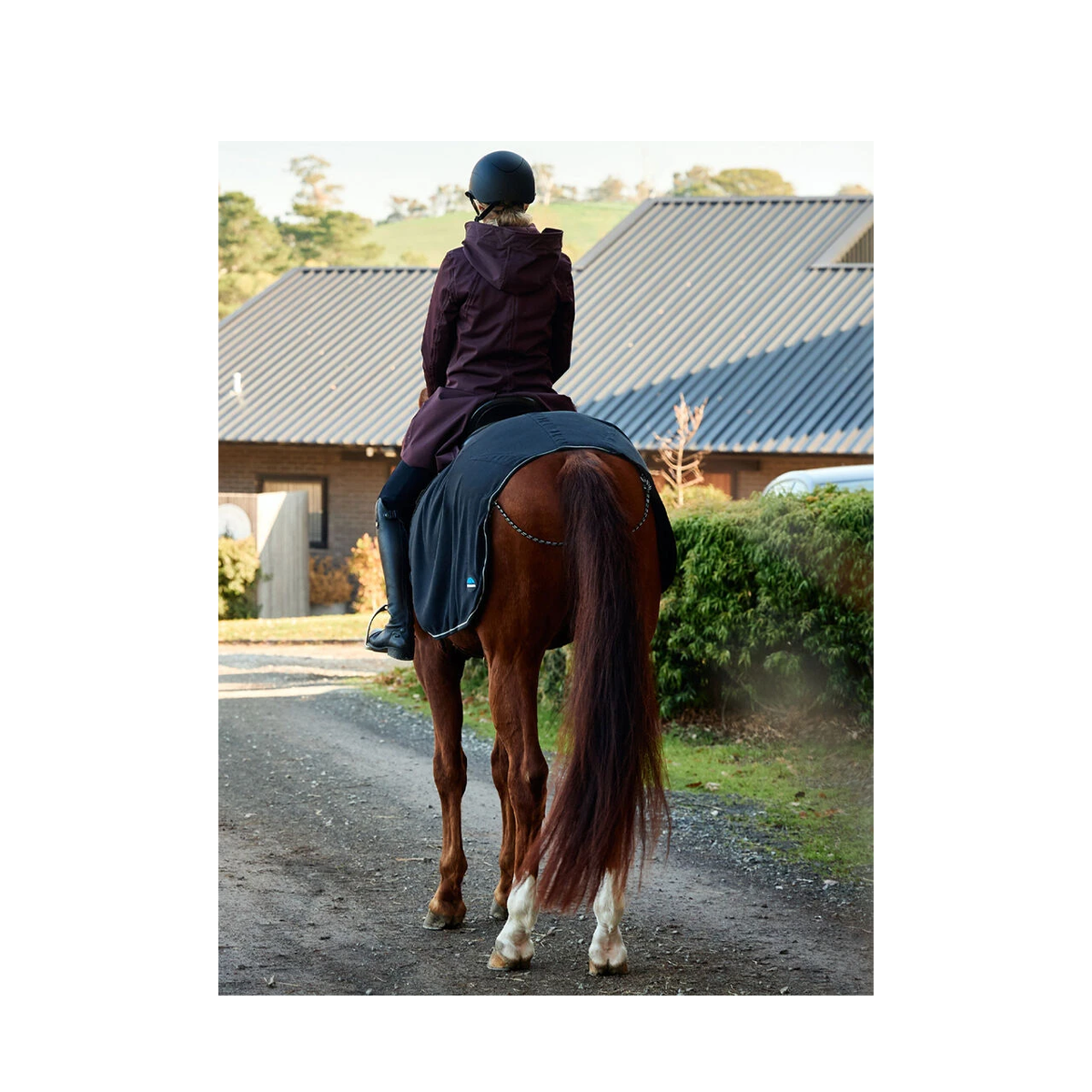 The WeatherBeeta Anti-Static Fleece Quarter Sheet is a lightweight horse exercise sheet ideal for use on colder days, designed to keep your horse's major muscle groups protected from the chill of colder weather when exercising. The WeatherBeeta Exercise/Quarter Sheet is made from a fleece fabric that draws moisture away from the horse's body while maintaining warmth. This quarter sheet wraps around the saddle and secures with a touch tape front closure at the wither, making for easy on/off, even during exercise. The sweeping hemline ensures that there is no interference with the riders leg position and the tail cord helps to keep the quarter sheet in place and prevent flapping during exercise. The polyester fleece fabric features anti-static technology which prevents your horse getting shocked from static electricity as well as being anti-pill, preventing the fleece fabric from bobbling.