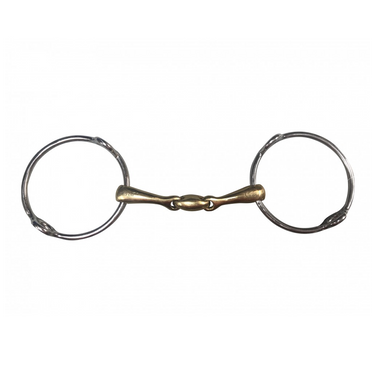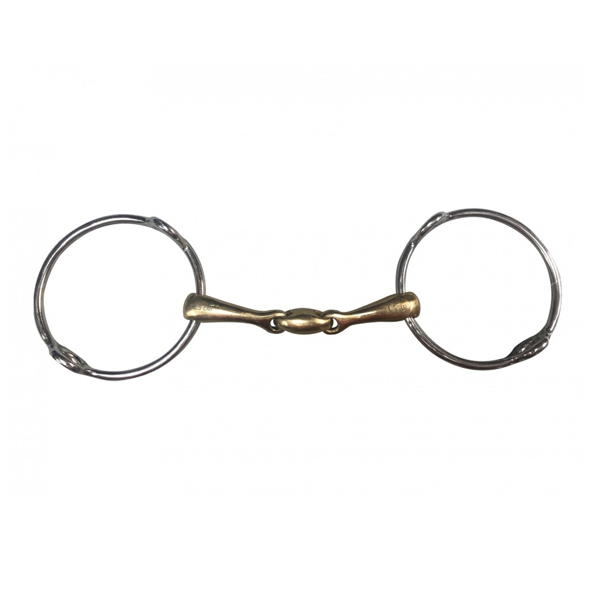 Composition : 90 mm ring snaffle bit, 17 mm standard barrel in German Silver (65% copper, 23% zinc, 12% nickel), a relaxing and strong alloy.