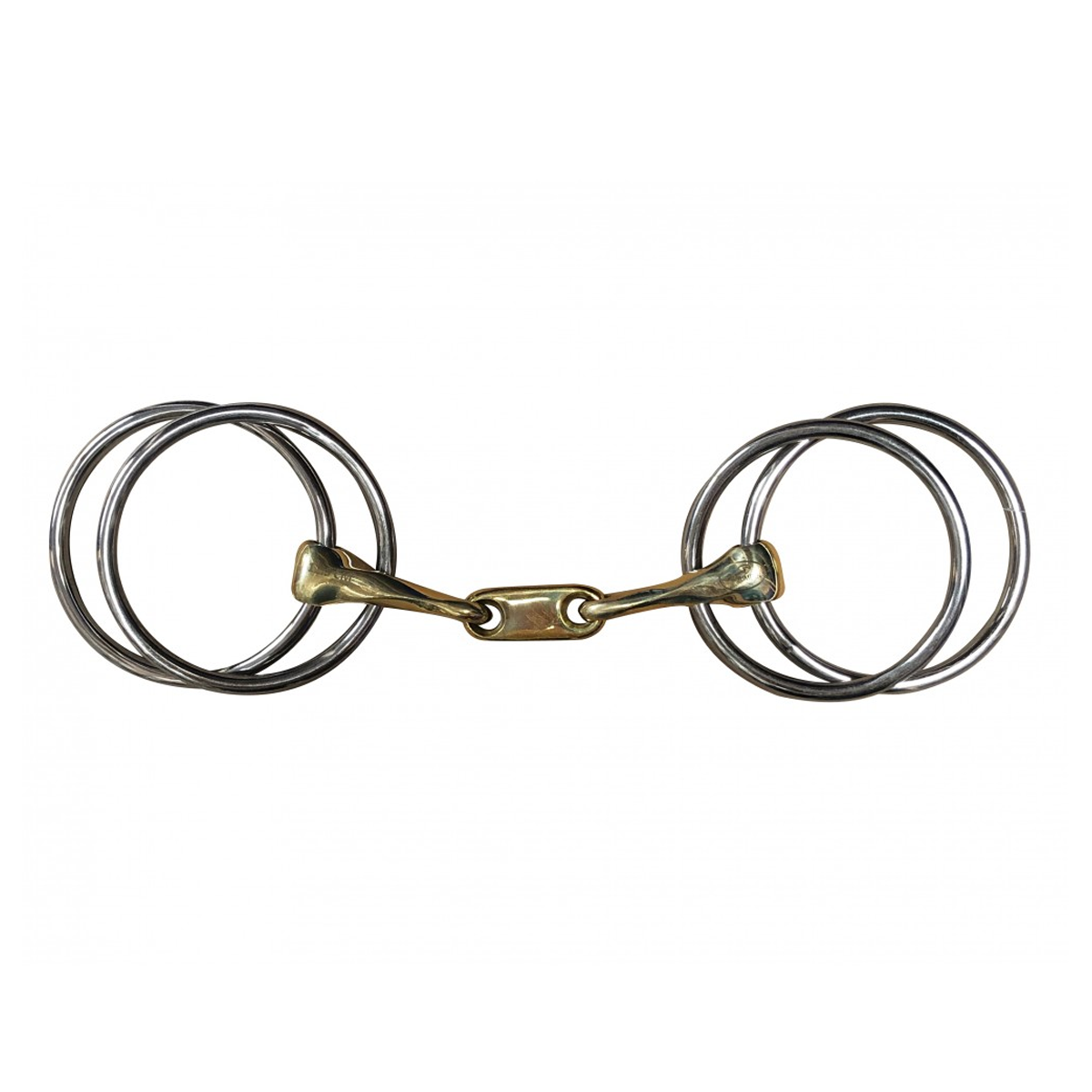 Tips: the play between the rings helps avoiding fixed points and so split the horses contact points. The thinness of the cannons combined with the twisted aspect and the central flat makes it easier for the horses to respect the bit and for the riders to have more control.