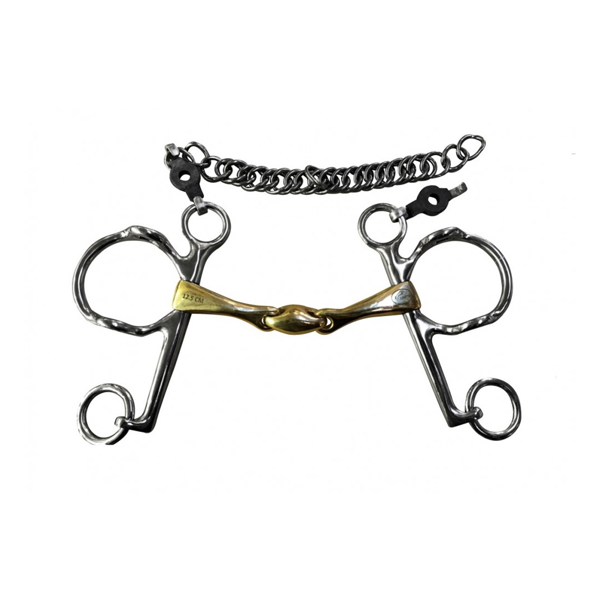 Tips: this Pelham bit can only be used with four reins by putting a pair on the gag cheek pieces and the other one on the Pelham bar. It is possible to use bit loops to reduce the action by putting them on the main ring and on the bar. Therefore, the curb chain action can be softened by using other curb chain types as leather or nylon ones.