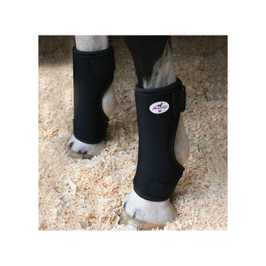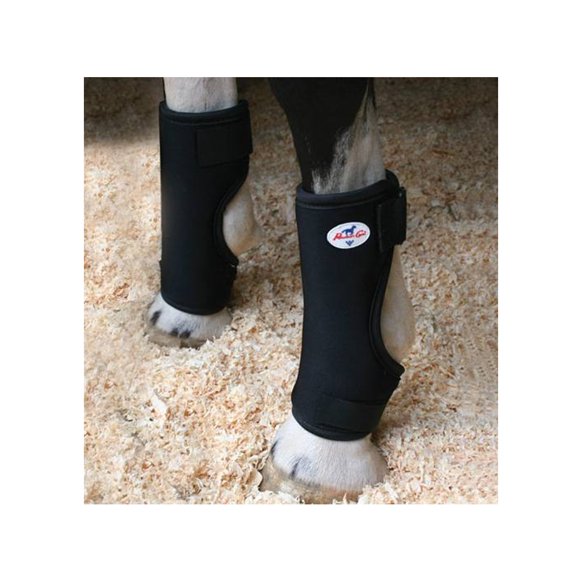Help to protect the front of the fetlock joint from developing bedsores and shield existing sores from insects and debris while they heal. Made of a breathable fleece interior and a neoprene exterior with long lasting hook and loop closures.