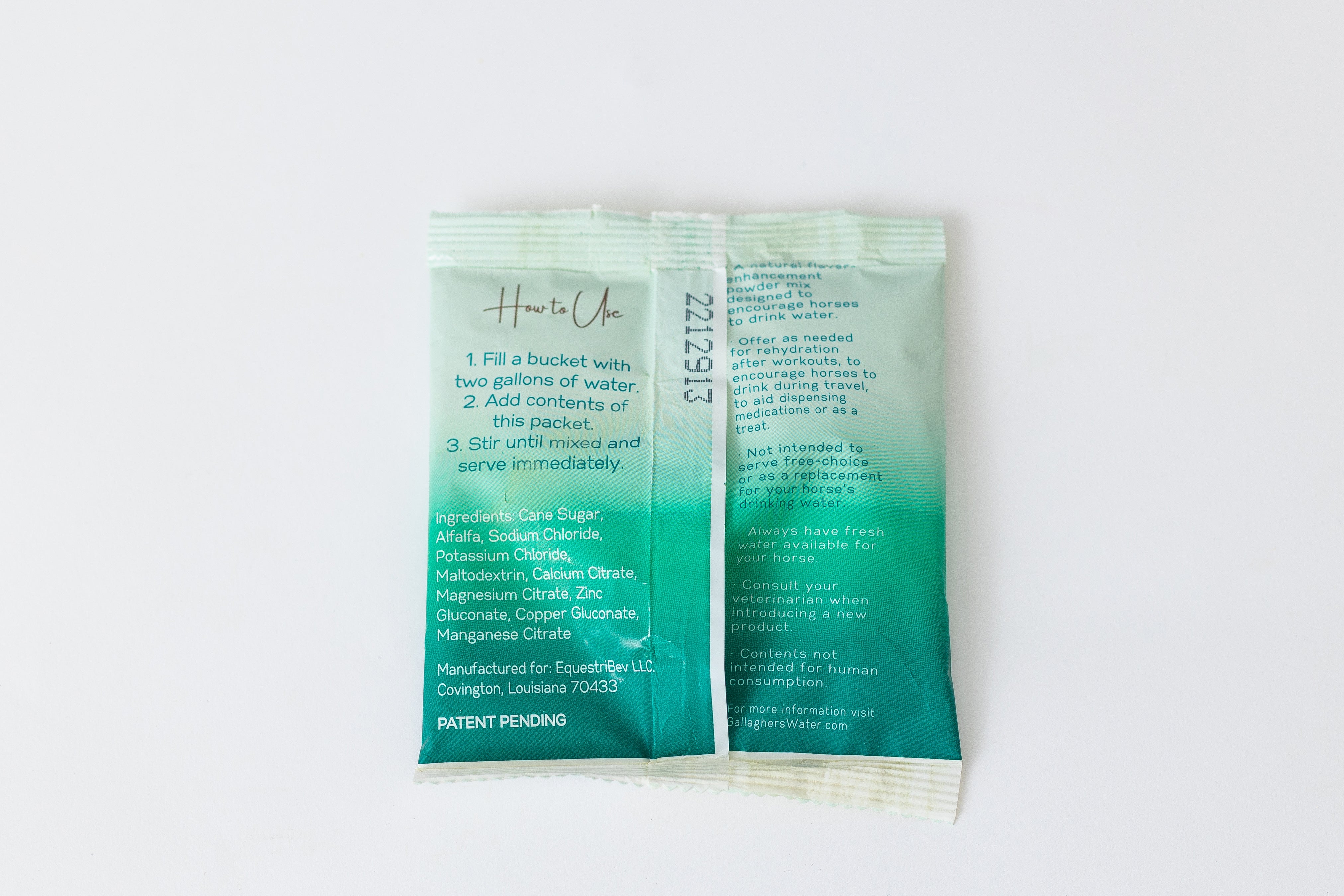 - Gallager’s Water is not intended to serve as free-choice or as a replacement for your horse’s drinking water.