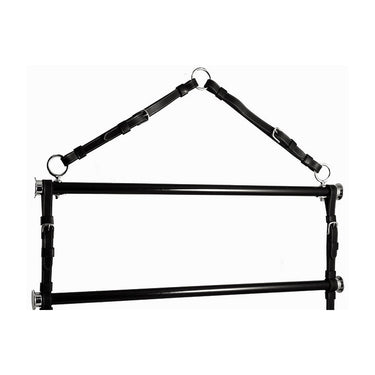 Cuatro tacos de 30" conectados con correas de cuero de 3/4" de cuero europeo fino. Los tacos de madera, teñidos de cordobán, combinan a la perfección con el color nogal australiano del cuero. El anillo para colgar cromado, los herrajes cromados, las terretas cromadas y las "tapas de los extremos" cromadas hechas a medida hacen de este estante una hermosa incorporación a cualquier sala de aparejos de calidad. Área para colgar de 28" entre las correas. Tamaño total de aproximadamente 41" de largo x 31" de ancho. Este artículo se fabrica a pedido y actualmente tiene un plazo de entrega de 10 a 12 semanas. Tenemos inventario disponible, pero no podemos incluirlo en la lista debido a todas las posibles combinaciones de colores y/o tamaños. Llame para conocer el inventario actual disponible.