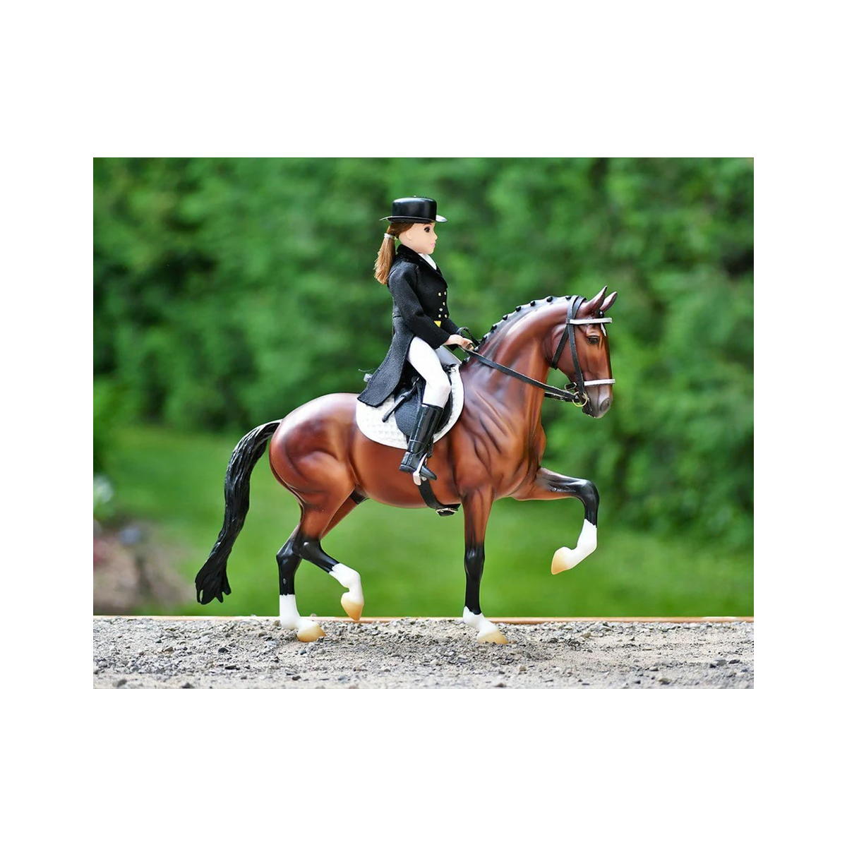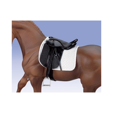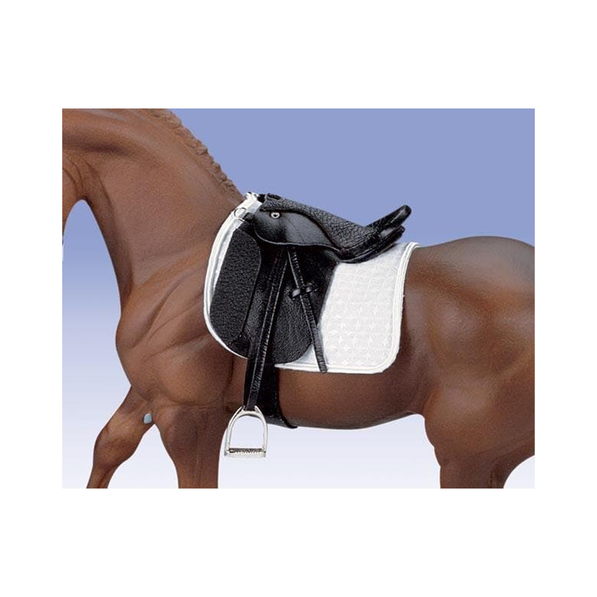 Esta silla de doma tradicional de color negro está hecha como una auténtica, tiene un asiento profundo y viene con una manta acolchada.