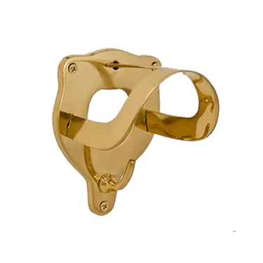 Brass Bridle Bracket with hook is a must have for any tack room. 5 Inches high, 3-6/8 inches wide, extends 3-1/4 inches from the wall. Available in a variety of finishes and with a wood backing.