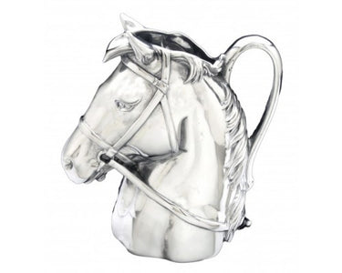 Haga girar toda su colección ecuestre en torno a este lanzador de pura sangre superventas de Arthur Court. Fabricado a mano en aluminio brillante, este caballo cuenta con una brida que se extiende hasta el hocico y alrededor de su cuello y cabeza de manera realista. Un mango curvo se sujeta a la hermosa y definida melena de la criatura, justo debajo de un orificio en la parte superior de su cabeza. Largo: 8,5" Ancho: 6" Alto: 10"