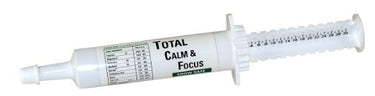 Total Calm & Focus es una fórmula natural desarrollada para calmar a su caballo nervioso y ansioso mientras mejora la concentración. El ramisol es el ingrediente de vanguardia en Total Calm & Focus que ha ofrecido resultados probados en los 2 Juegos Olímpicos anteriores, los Juegos Ecuestres Mundiales y los Campeonatos Mundiales y Nacionales en todos los grupos de razas y disciplinas durante los últimos 6 años. El ramisol ayuda a mantener niveles normales de cortisol. La hormona del estrés cortisol se libera en respuesta al ejercicio y estímulo de alta intensidad. El estrés y los niveles altos de cortisol pueden estar relacionados con la fatiga, los cambios de humor, el comportamiento agresivo y la depresión. El ramisol ayuda a minimizar el aumento de los niveles normales de cortisol inducidos por un entrenamiento riguroso. Se agrega magnesio y una mezcla equilibrada de vitaminas B, que han demostrado ser muy beneficiosas para los caballos nerviosos e hiperactivos. Deje que Total Calm & Focus elimine el estrés y el descontento de su caballo y le permita volver a un entrenamiento seguro y productivo, una exhibición o un paseo relajante por el sendero. Total Calm & Focus se puede utilizar para exhibiciones, preparación para la venta, carreras, transporte y entrenamiento. Total Calm & Focus no contiene hierbas ni sustancias prohibidas y no le dará a su caballo un efecto somnoliento como muchos productos. Simplemente perderá el comportamiento nervioso mientras mantiene a su caballo alerta, con las orejas hacia adelante y la energía concentrada para la tarea en cuestión. Como su nombre lo indica... Calma y concentración