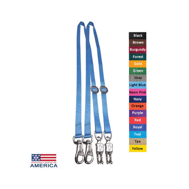 Un método seguro, confiable y reutilizable para atar caballos. Fabricado con correas de poliéster de 1" de peso pesado con un broche de hierro maleable en un extremo y un broche antipánico en el otro extremo. El broche antipánico está diseñado para sujetar a un caballo en circunstancias normales y, al mismo tiempo, liberar a un caballo asustado. Esta característica reduce en gran medida el riesgo de lesiones a los caballos y a los humanos. Se ajusta a 7' de largo. Se vende por unidad.