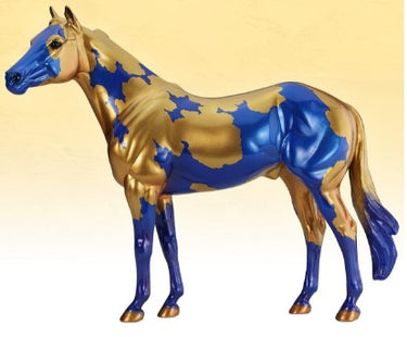 A principios de los años 60, Breyer lanzó sus primeros modelos "decoradores": caballos que presentaban acabados decorativos y coloridos tanto en mate como en brillo. Aunque no eran los modelos más populares en ese momento, ¡desde entonces los decoradores se han convertido en algunas de las piezas más queridas de la línea Breyer! Los primeros modelos decoradores eran tonos simples de azul y dorado, ya sea moteados o lisos. Los decoradores de hoy se inspiran en una rica paleta de colores y una variedad de inspiraciones, que incluyen arcoíris, festividades y el cielo nocturno. Gilded es una nueva y emocionante versión de la paleta de colores azul y dorado original, que combina impresionantes tonos metálicos con un llamativo pelaje pinto. ¡Esta obra de arte de edición limitada celebra la belleza del caballo y el arte de Breyer! ¡Seguro que quieres este hermoso modelo en tu colección Breyer!