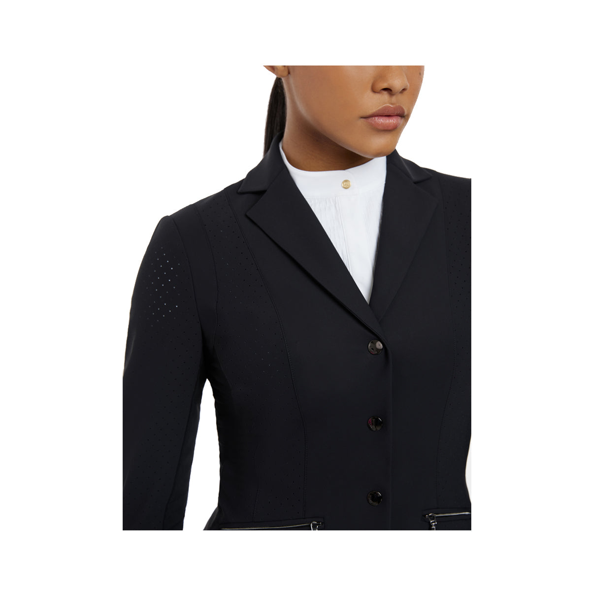 It's a lightweight, breathable show jacket designed to take care of the temperature so you can focus on performing your best. Perforated panels and ultra-fine mesh under the arms and armpits ensure ventilation and airflow, no matter how hard you work.