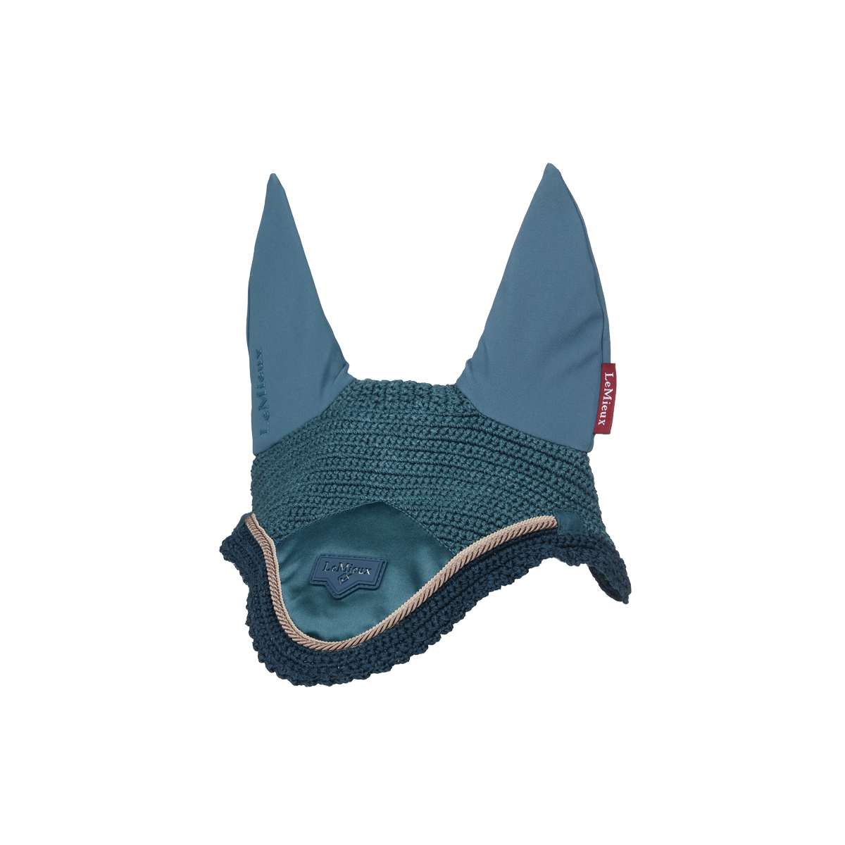 The veil is crafted in handmade 100% cotton crochet with four-way stretch for a secure fit under the bridle. It's edged with a decadent braid or cord trim. A stylish satin front piece features the signature LeMieux logo as a badge motif.