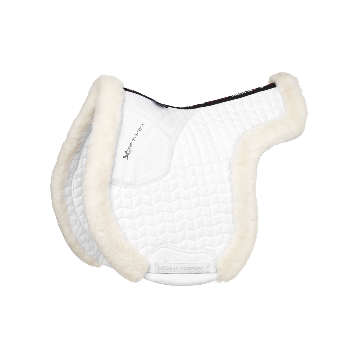 The sporty girth protection area lends subtle luxury and practical durability to the pad.