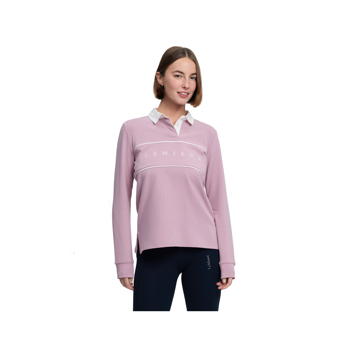 Ride the rugby shirt trend with this traditional take on a British classic. Crafted in lovely heavyweight soft loopback fabric, the generous cut gives a body-skimming boxy shape with a nice flow to it.The cotton collar has white buttons detailed with colour-match LeMieux branding, making it a versatile choice for layering or wearing alone. A classic for any season. Size up for a more oversized fit.