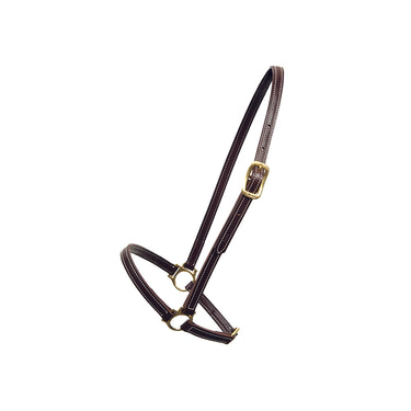 3/4" wide grooming halter. Double- stitched, two-ply construction. Hand-rubbed edges. Adjustable chin. Single buckle crown. Solid brass hardware. Chestnut/White thread. Available in these sizes: Yearling Medium Pony, Cob, Regular Horse, Large Horse. Made in USA.