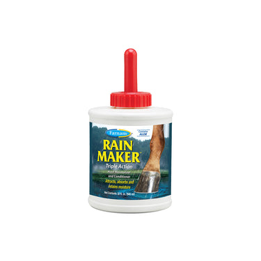 Special natural ingredients are combined to give Rain Maker hoof moisturizer its unique "Triple Action" attraction of moisture to the hoof, absorption of moisture and retention of the moisture once it has been absorbed. Advanced formula hoof dressing that leaves hooves stronger and more pliable. Penetrates deep to improve texture and elasticity. Enhances color and sheen.