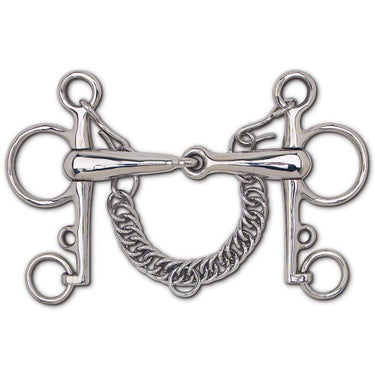 Stainless Steel hollow mouth pelham with a 5" mouth and a 5 1/4" shank.