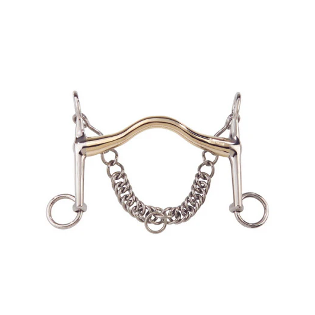 The Bemelmans Weymouth bit offers an optimal fit that keeps the horse comfortably on the bit. Its smooth, rounded port and tapered mouthpiece are designed to suit the sensitive palatal arch, ensuring even pressure distribution across the tongue. This design minimizes the horse’s tendency to put its tongue over the bit, promoting relaxation and responsiveness for a contented ride.