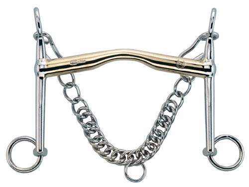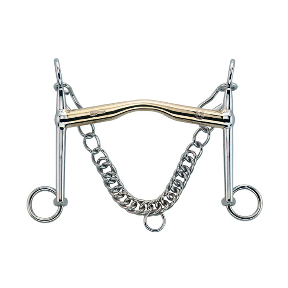 The HO-Weymouth Bit features a slanting mouthpiece with a smooth, rounded port angled forward to distribute pressure evenly on the tongue. Designed for horses sensitive to tongue pressure, it offers precise rein aids by leveraging the tongue’s exceptional sensitivity. Ideal for gently introducing horses to a Weymouth bit, its unique shape promotes harmony between rider and horse, ensuring a relaxed and secure contact. This bit supports refined communication and comfort during riding.