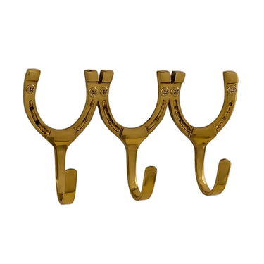 Beautiful Solid Horseshoe with Three Hooks for any tack room, mud room or stall door. Available in a variety of finishes. 4.0 inches high, 7.5 inches wide, extends 1-5/8 from the wall