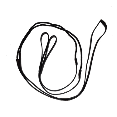3/4" width leather at each end. Mountain climbing rope center to allow quick release at bit with loop ends. Made in the USA.