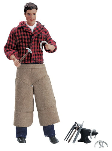 No hoof, no horse! Breyer's fully articulated 8" farrier figure comes with anvil, hammer, file, nippers, and set of horseshoes. Recognized by the American Farrier's Association.