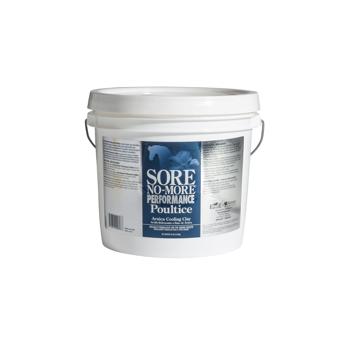 Sore No-More®Performance Poultice is FEI compliant cooling clay for horses that works to provide relief for inflammation by drawing out heat, swelling, infections, toxins and fluid while stimulating circulation and cooling the area. The all-natural formula contains high-grade bentonite clay to help reduce swelling and inflammation while still remaining gentle on horses with sensitive skin. It's safe enough for your own hands to use without gloves and safe to use with wraps, bandages, paper or plastic.