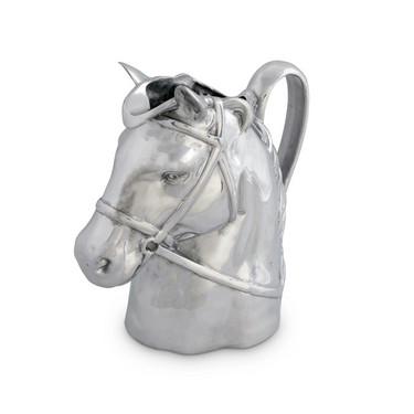 Revolve your entire Equestrian Collection around this best-selling Thoroughbred Pitcher from Arthur Court. Handcrafted in lustrous aluminum, this horse features a bridle that stretches up the muzzle and around its neck and head in realistic fashion. A curved handle attaches to the creature's beautiful, defined mane, just below a hole in the top of its head.
