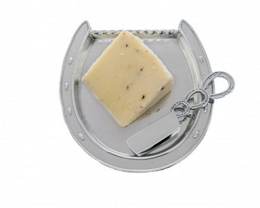 Put your best hoof forward with this Horseshoe Plate with Server from Arthur Court. Line your meat and cheese in the U-shaped pattern of this dish, while its realistic nail marks accent your food. Three, small horseshoes form convenient finger holes in the server's handle to complete this handmade, aluminum set.