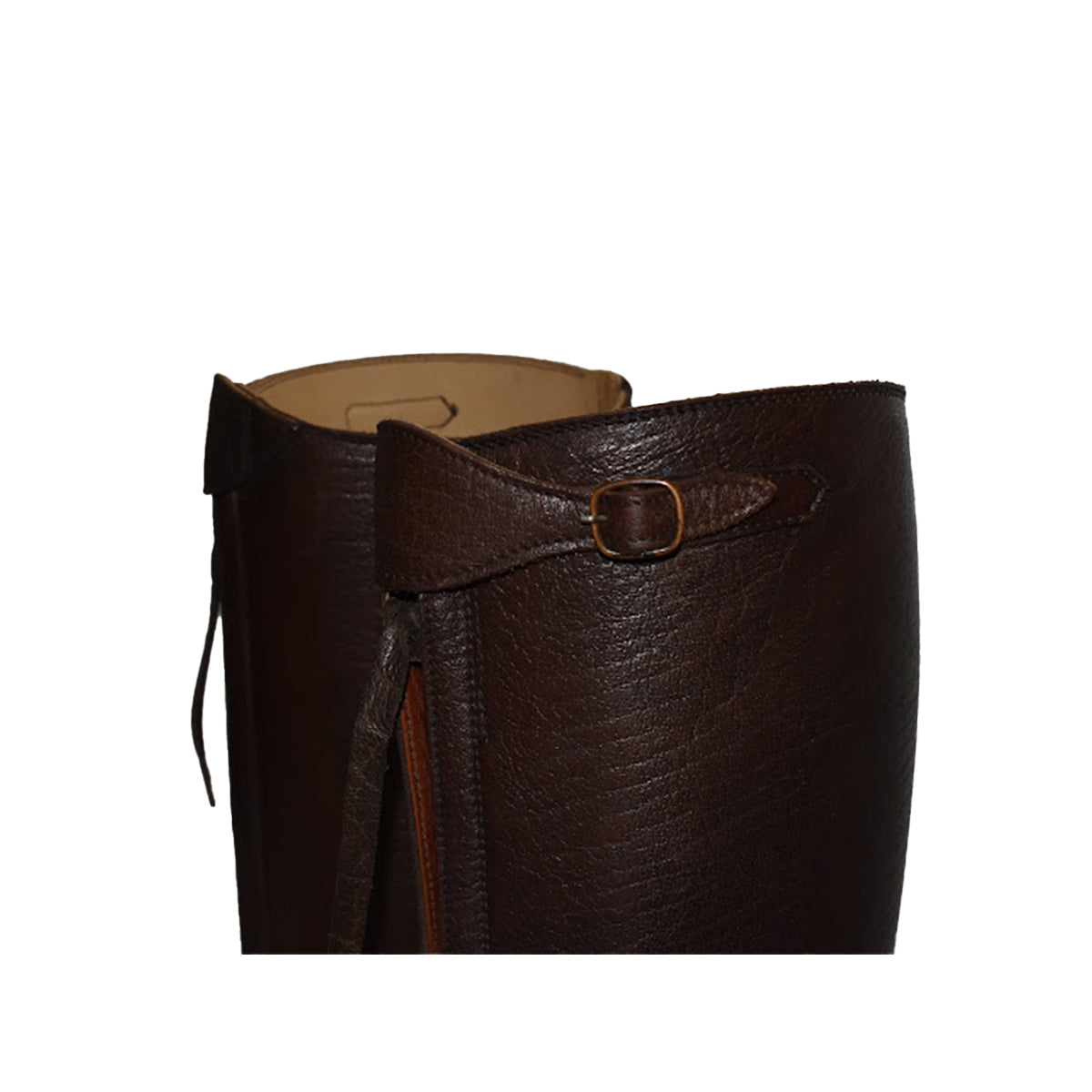 Manufactured with aniline leather, with suede style lining. Totally reinforced. Bronze clasp. Manually insoled. Available colors: buffalo and Havana brown.