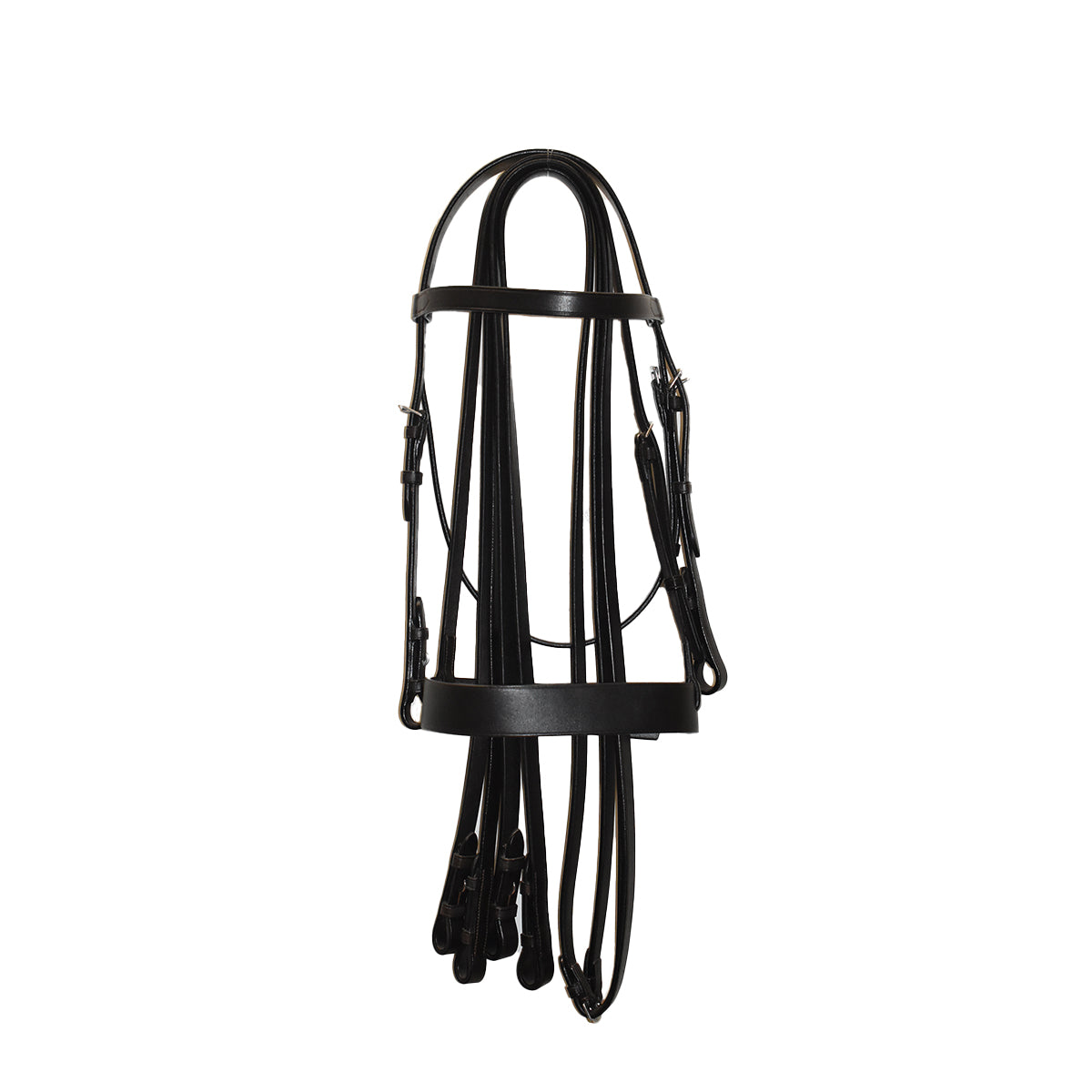 Includes: crown, browband, 3/4" cheeks, 1-1/2" slotted leather caveson, 2 pair of reins (3/4" and 5/8"). Made in the U.S.A. Bit not included.
