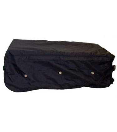 Hay on wheels! This long wearing, vinyl coated, 600 denier nylon rolling bale bag with eight sturdy web handles and six heavy duty wheels allow for easy portability at the stable or horse shows. This unique bag is designed with six vent holes and a two way zipper for easy loading and access. Conveniently accommodates a large two wire bale, keeping hay dry and minimizing flake loss. Measures 45" long x 24" wide x 14" high. Available in black only.