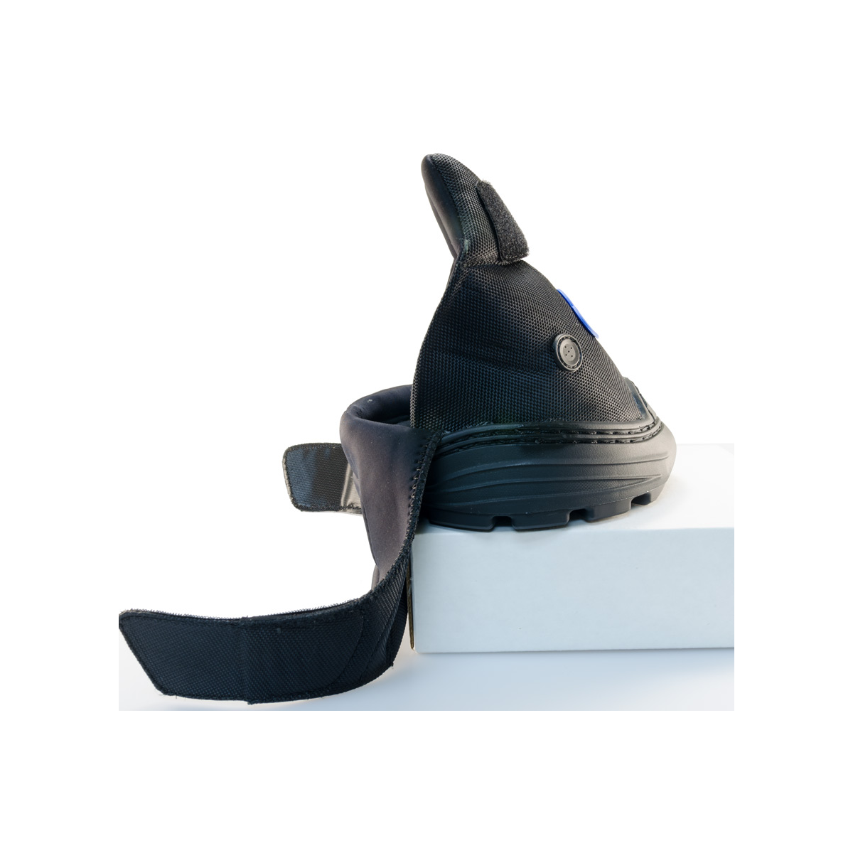 The Easyboot Cloud is a therapeutic hoof boot system to give comfort and support to horses with thin soles, abscesses, founder, laminitic stages, stresses of shipping, recovery after workouts or stalling on hard surfaces. It provides instant and ongoing relief for horses suffering from chronic lameness and general lower limb or hoof problems by aiding movement and reducing recovery time after injury or surgery. Seams and edges of the industrial strength Cordura® upper are rounded for safety. A padded collar provides additional relief to the pastern area. Three air vents provide air circulation to keep the hoof cool while preventing the accumulation of dirt and debris. The Easyboot Cloud is not intended for riding. As with any hoof or leg related injury, consult your veterinarian or hoof care professional for diagnosis and treatment recommendations EVA Comfort Pad conforms to thehoof and provides additional comfort and support to the sole. Supportive Tread reduces loading of the peripheral hoof wall, spreading weight across the entire solar area. Secure Fit allows for light turnout. Designed for use with the Easyboot Click System Back Folds Down for easy installation and removal.